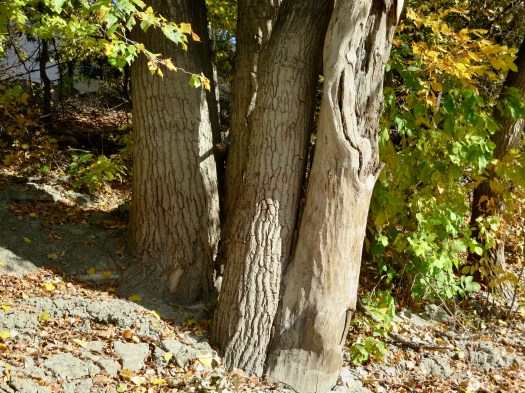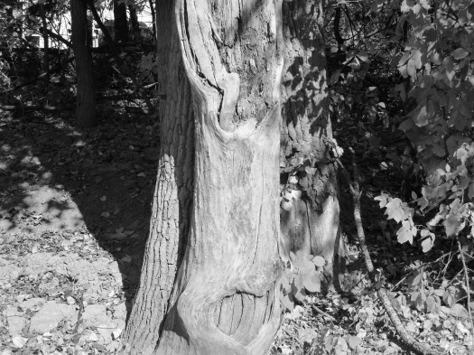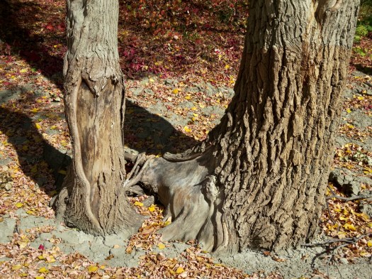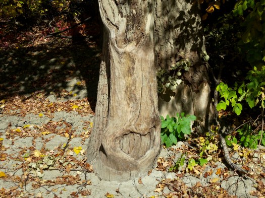 There are four rivers, lined with thousands of trees, that flow through Winnipeg, Manitoba, Canada. They often flood in the spring and also swell during heavy summer rains. There’s a walkway, near the city centre, that takes you along the Assiniboine River to where it joins the Red River at what is called The Forks. The flooding is not as bad as it once was because we now have the large Red River Floodway that diverts water as needed. There are other projects that have helped, too. Even so, the water gets high pretty much every spring and soaks the many trees along the walkway. Then, if the floodway is opened or as summer naturally comes, the water recedes and the trees dry out.