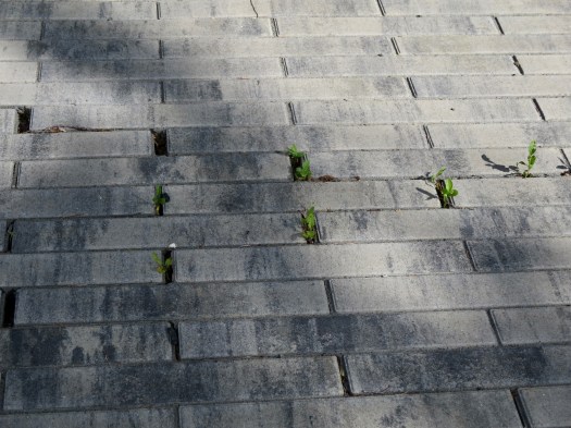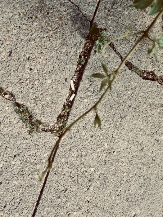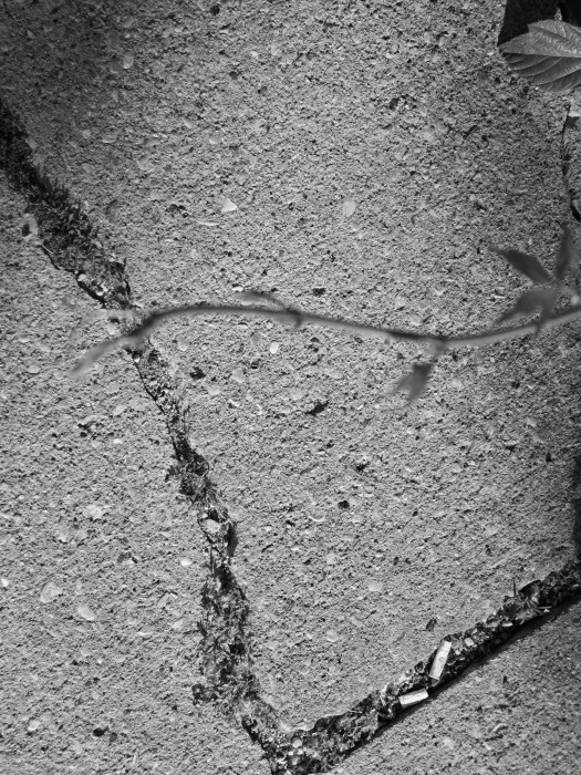 2. Good Monday Louella: Your shots of the pavement and brick walk ways, the cracks, the weeds, and branch are intriguing. Lots of potential. It reminded me of a short film of the ’70s entitled, The Persistent Weed. Good stuff,