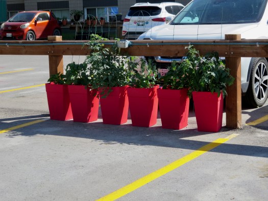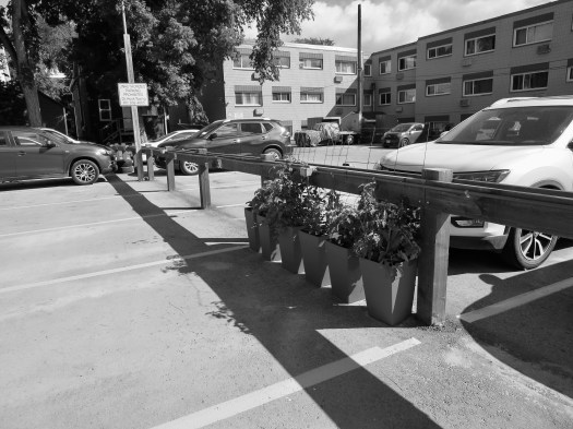 Kind of like plants, abandoned in that thin dry space between building and sidewalk.