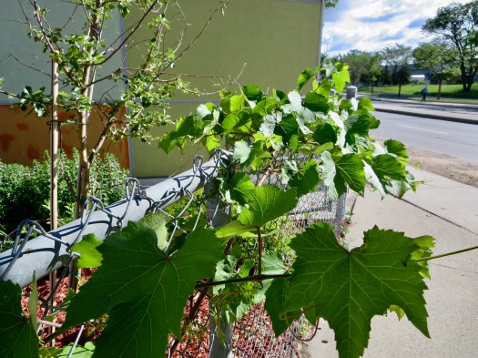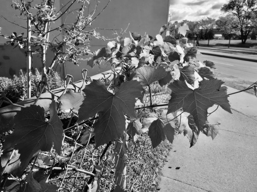 Or hanging over a chainlink fence, along a busy street, in near-drought conditions.