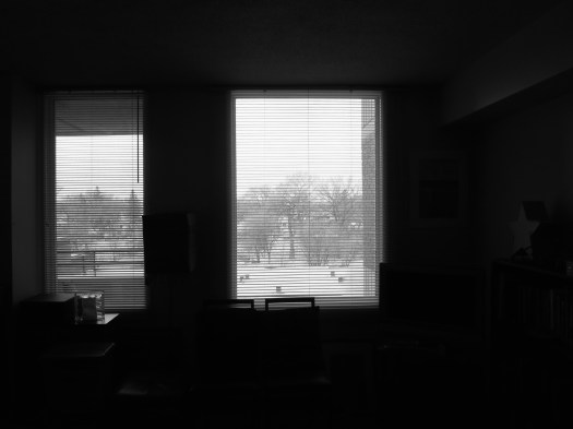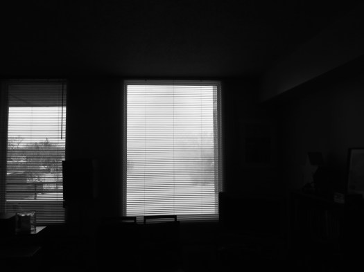 Now, in winter, depending on the temperature, wind strength, and wind direction, fog often appears, moving past or filling in my living room window.