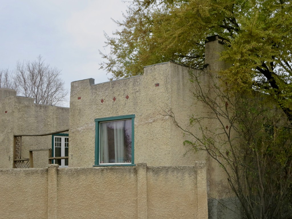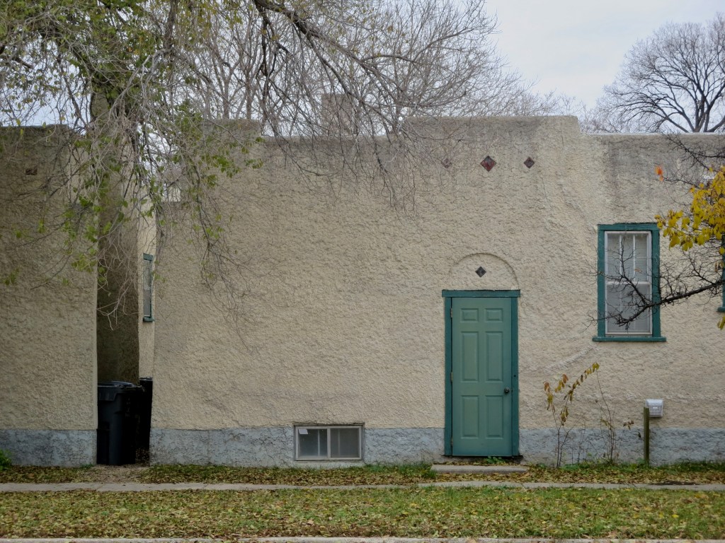 They’re bungalow style apartments with small courtyards and private entrances, built in the late 1920s, in the California mission style, with colonial Spanish revival design touches. (Info from Winnipeg Architectural Foundation, https://winnipegarchitecture.ca )