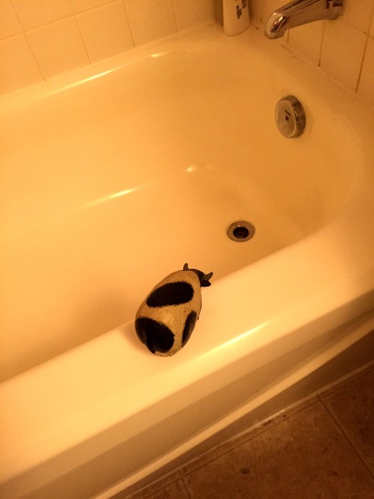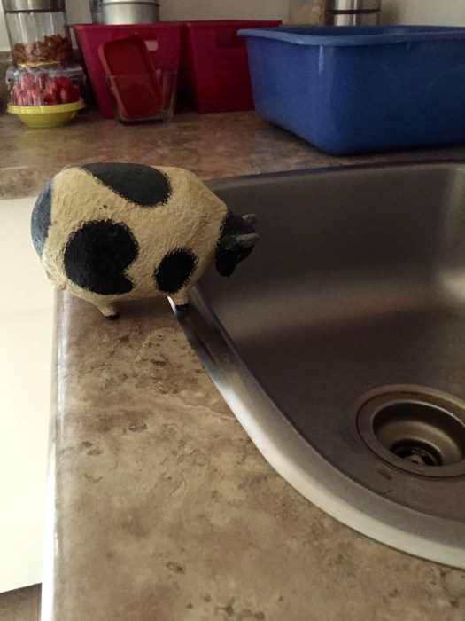 The kitchen sink was a good place to cool down. But it wasn’t long before Plump Cow noticed a light behind her.