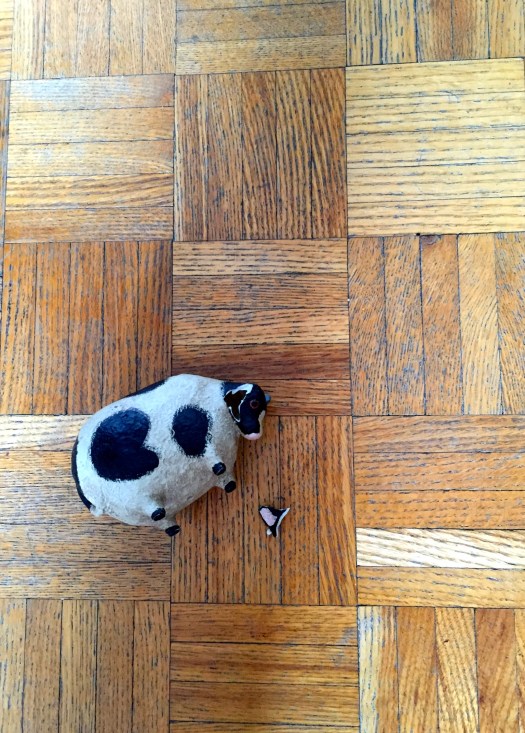Plump Cow was back in her usual spot. “From this angle you can’t even tell you’ve been glued together,” said Swimmer Face, “Don’t let this stop you.” Plump Cow looked down and winked. “I’m just going to rest and regroup. Nothing will stop me.”