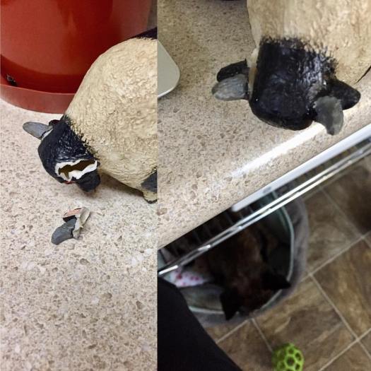 “Moooooooo…Ouch!” Plump Cow’s left ear and horn lay on the floor beside her and the dog was loping towards her again. The cow scooped up her ear and galloped to the kitchen. She shimmied up the counter leg just before the dog rounded the corner. “Phew!” Plump Cow searched the drawers and was able to find some glue which she used to reattached her ear and horn. (For those of you who saw Season 1 you may have a sense of deja vu, but this was the other ear.) Meanwhile Stan fell asleep in the basket below.