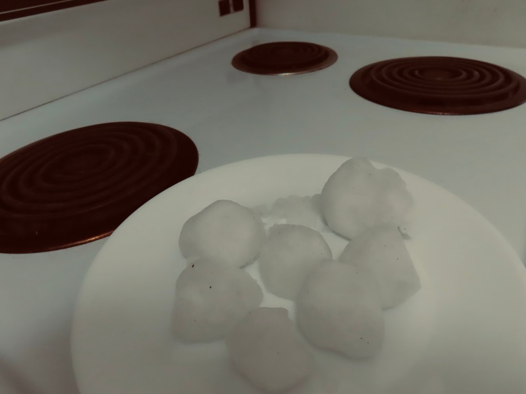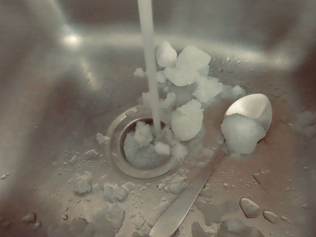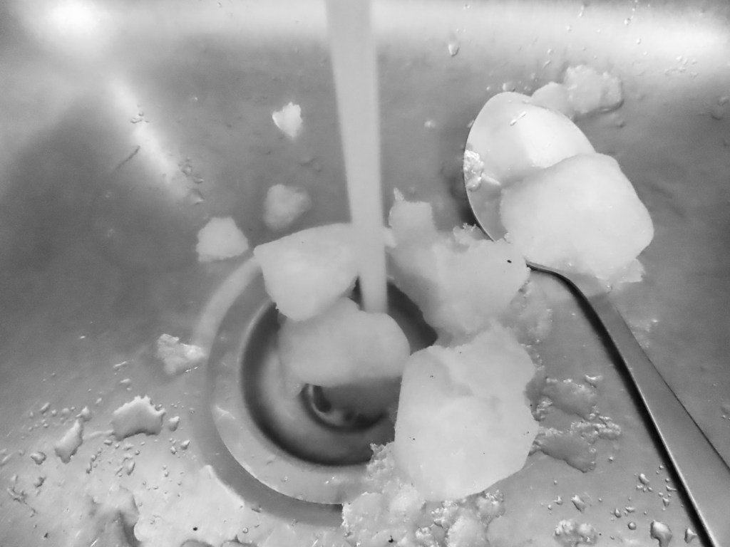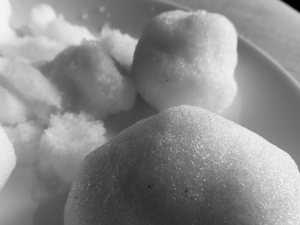 In February, I asked my Facebook friends to give me suggestions. Lori Broadfoot suggested snowballs. Elaine Pollard suggested reflections in puddles on a shiny surface (and there’s a bit of that in the kitchen sink shots).