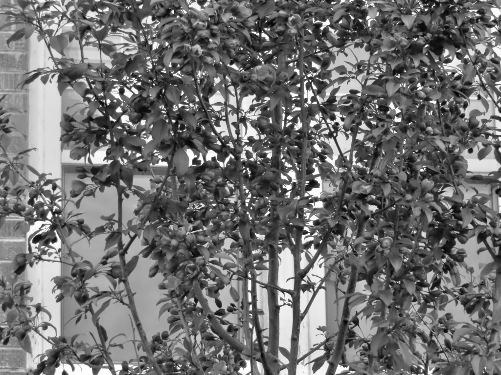 I almost always have my camera with me in the side pocket of my backpack or in my jacket pocket, so, on a grey morning in the middle of May, I pulled it out when I saw a small tree in front of an old apartment building, just off Osborne Street in Winnipeg.