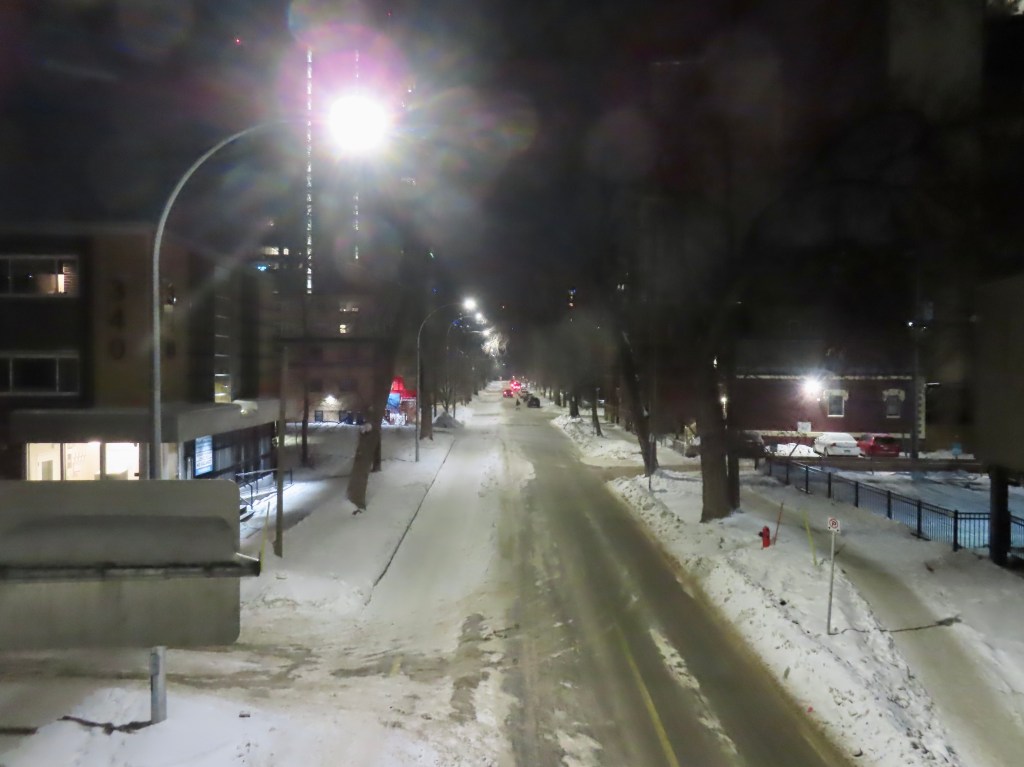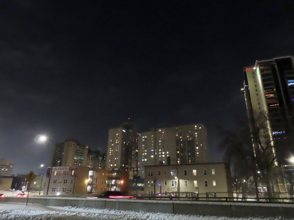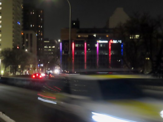 The Midtown Bridge, often called the Donald Bridge, spans the Assiniboine River, but at its north end, coming into downtown, you can look below to see Assiniboine Ave.