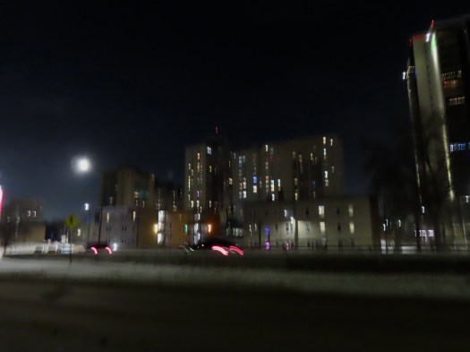 In December, we walked over the bridge one evening, and I took some photos, of course. Some of them are shake-the-camera abstracts and some are not.