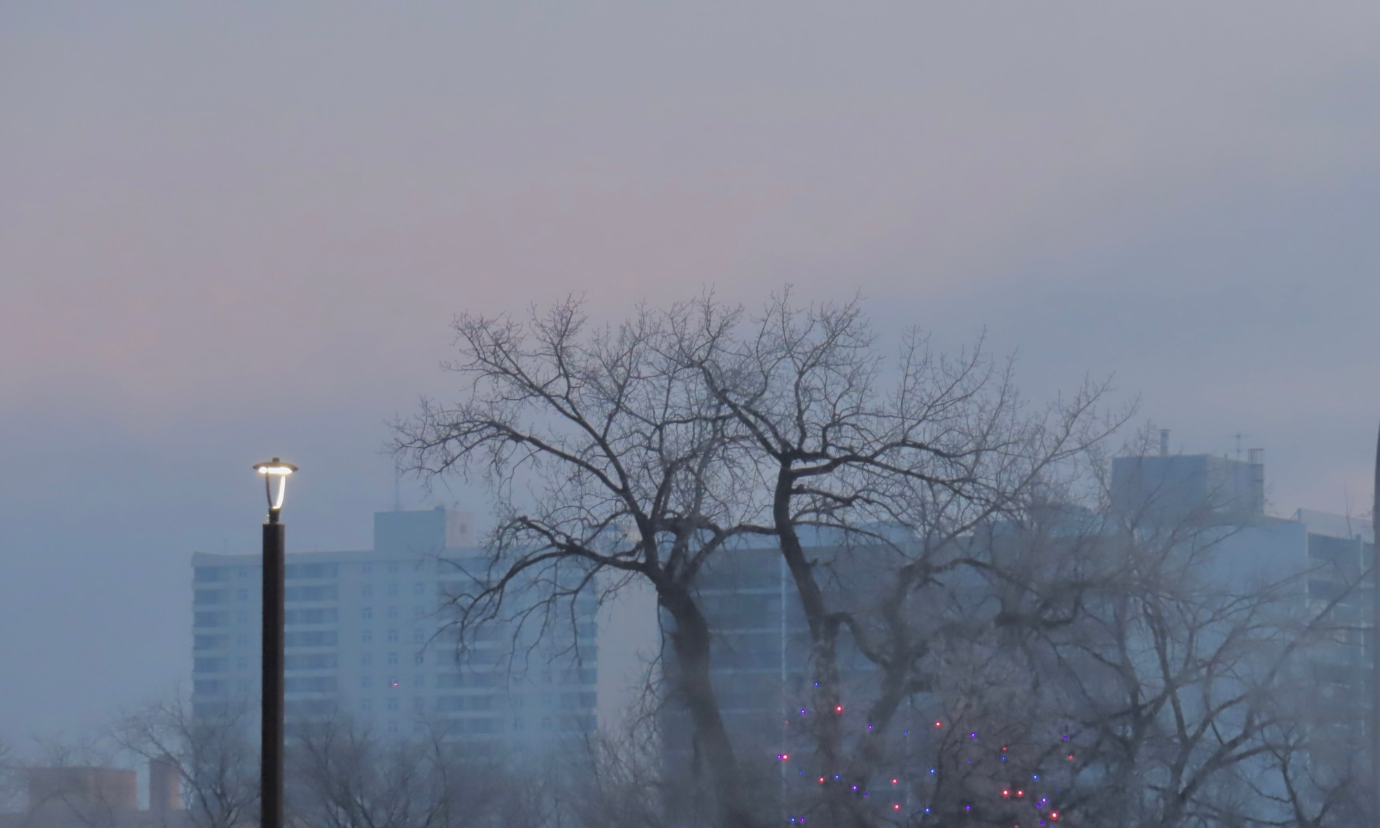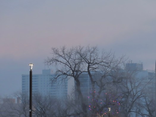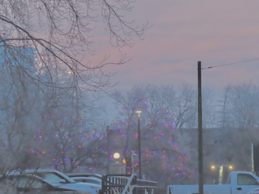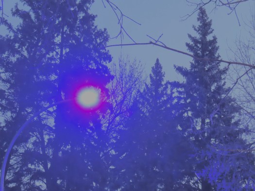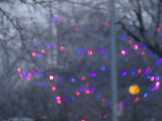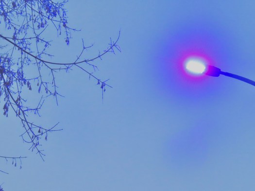 And a couple of those bright LED (I think that’s what they are) street lights that shine an eerie blueish pink.