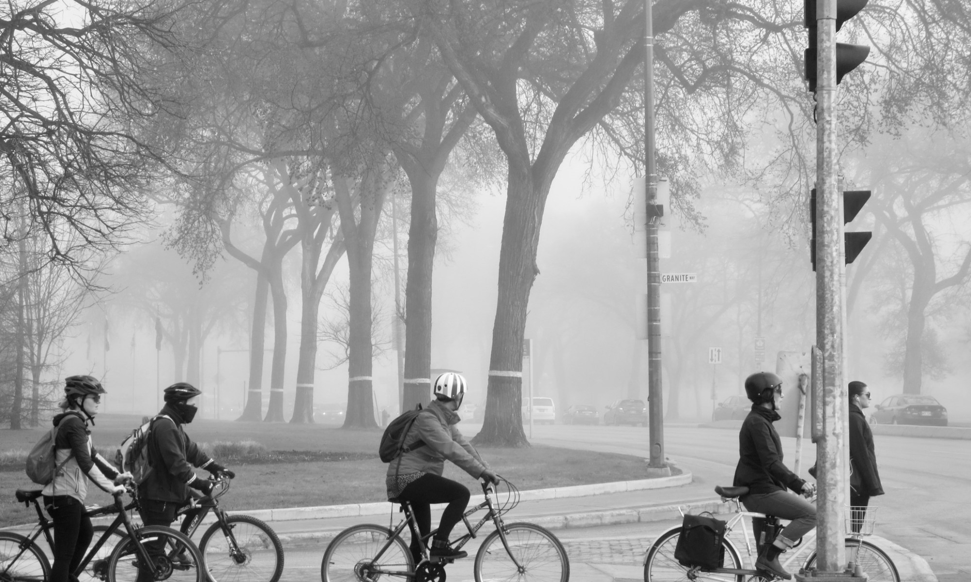 Maybe it’s just me, but I find it interesting to watch the interaction between people using various modes of transportation. This is likely because I walk, ride a bicycle, use the transit system, and sometimes drive a car I’ve booked through Peg City (a Winnipeg car share organization to which I belong). So, camera in …